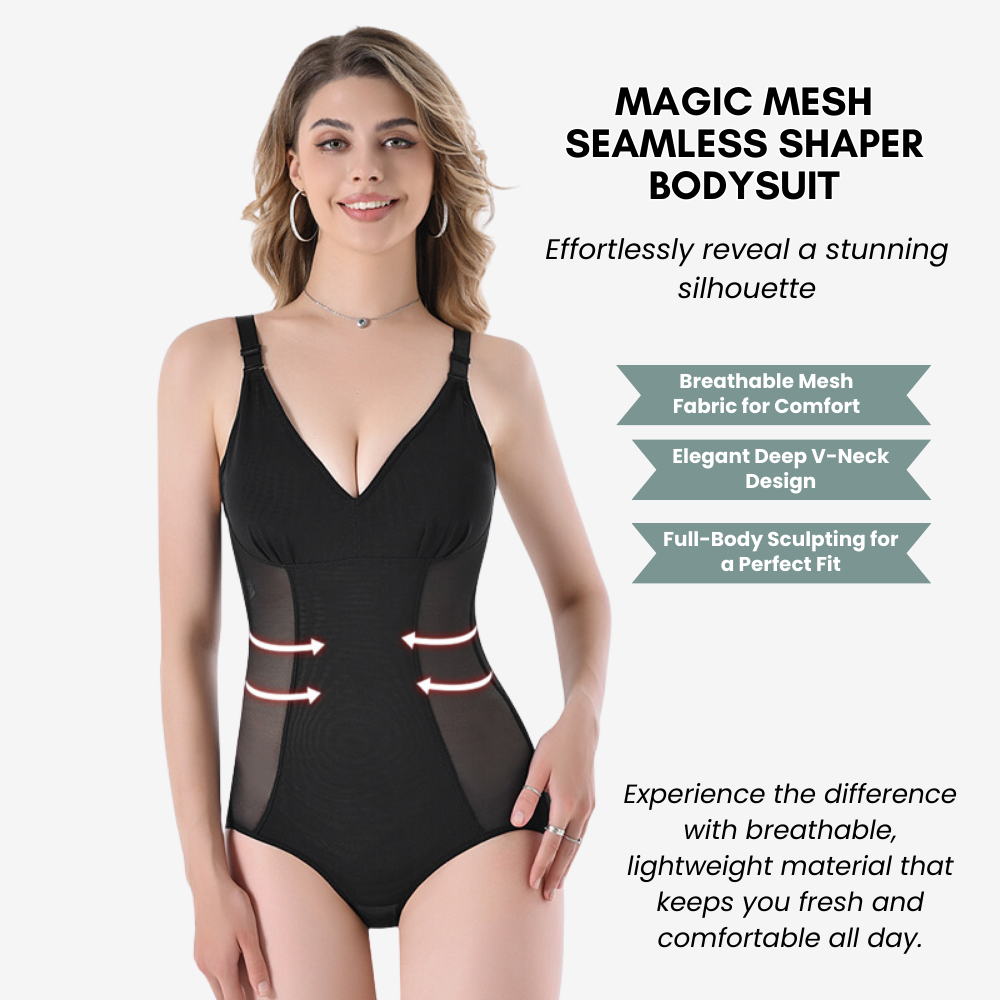 Step into effortless elegance with the Magic Mesh Seamless Shaper Bodysuit, the ultimate combination of function and style. This unique bodysuit is designed to sculpt your figure seamlessly, providing a flattering fit that enhances your natural curves. Crafted with breathable mesh panels and high-stretch material, it delivers a sleek, comfortable silhouette that moves with you all day long. Whether you're wearing it under your favorite dress or on its own for a bold statement, this piece ensures you feel sexy, confident, and unstoppable.