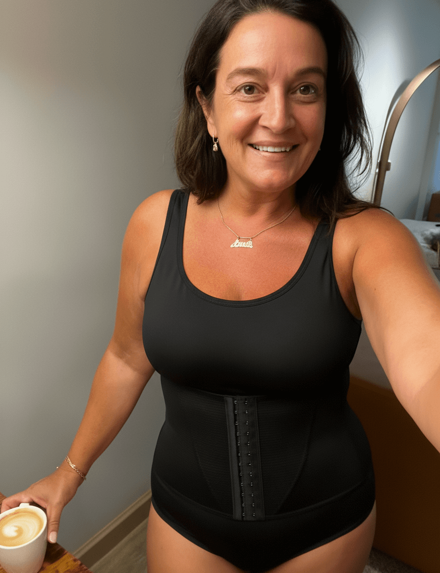 A great bodysuit that doubles as a tank top. The fabric is soft and stretchy, shaping the body nicely without feeling restrictive. It smooths out the lower abdomen and is an excellent choice for anyone with loose skin.