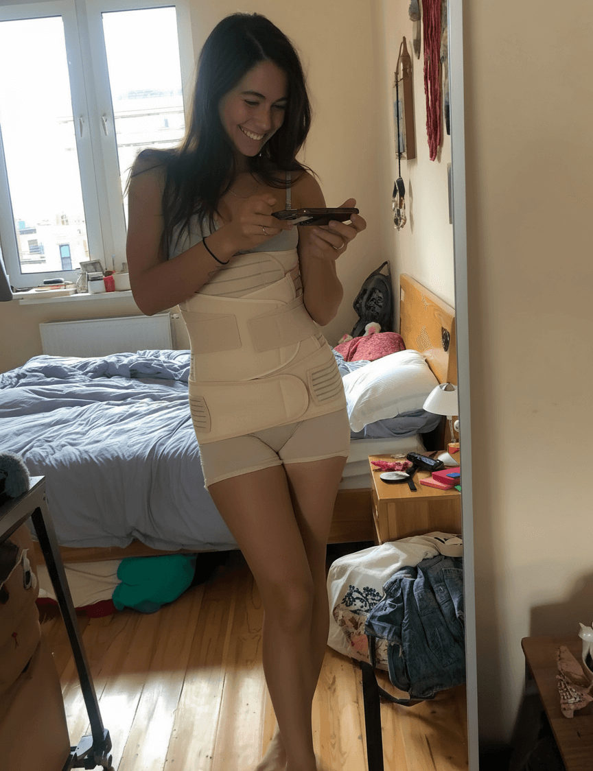 Our triple reinforced postpartum band is specially designed for postpartum mom. Made of skin-friendly breathable fabric, super-elastic, adjustable and an innovate design you will feel amazing wearing it.